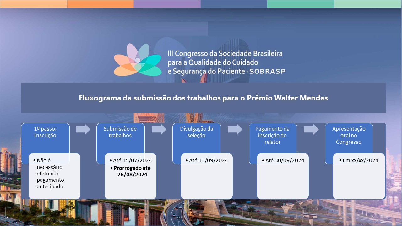 III.1. O Prêmio “Walter Mendes”, em sua 3ª Edição no III Congresso da Sociedade Brasileira para a Qualidade do Cuidado e Segurança do Paciente – “Construindo o futuro da qualidade e da segurança do paciente no ecossistema da saúde: experiência humana, governança e sustentabilidade”, em 2024, é patrocinado pela Sociedade Brasileira para a Qualidade do Cuidado e Segurança do Paciente – SOBRASP.