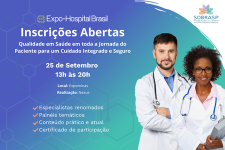 Inscrição: https://nexus.expohospitalbrasil.com.br/ii-painel-sobrasp-de-seguranca-e-cuidado-do-paciente