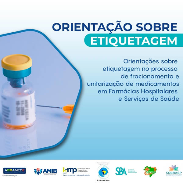 As instituições ABRAMEDE, AMIB, ISMP, REBRAENSP, SBA, SBRAFH e SOBRASP, publicaram em 01 de julho de 2021, "Orientações sobre etiquetagem no processo de fracionamento e unitarização de medicamentos em Farmácias Hospitalares e Serviços de Saúde.